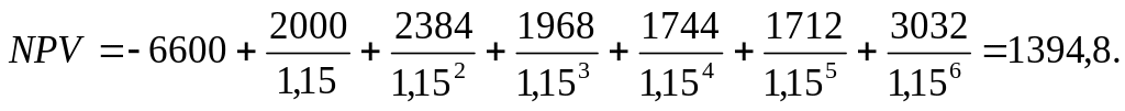 Визначаємо нетто-дисконтовану вартість за ставкою 15 %: