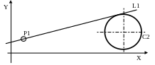 В прикладі задана пряма L1, дотична до ТЗК Т1 в її початковій точці.