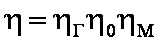 N[кВт] = G[кг]H[м]102η[безразм.]. Потери в насосе могут быть гидравлическими (затраты на преодоление гидравлических сопротивлений внутри насоса), объёмными (сокращение подачи насоса по сравнению с подачей рабочего органа) и механическими (трение деталей насоса о жидкость — внутренние механические потери, трение их друг об друга в подшипниках и т. д. — внешние). Учитываются, соответственно, гидравлическим КПД ηг, объёмным ηоб и механическим, разделяющимся на внутренний и внешний, ηм=ηмiηмe. η=ηгηобηм; Ni = Nηмe.