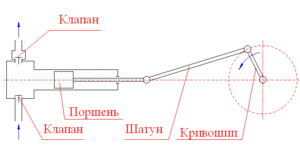 Рис. 1. Конструктивная схема простейшего поршневого насоса одностороннего действия