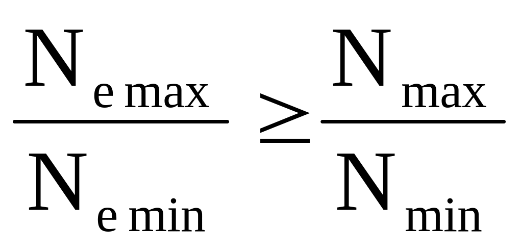 5. Для обеспечения заданного графика пропускной способности газопровода необходимо, чтобы КС были укомплектованы агрегатами, обеспечивающими экономичные режимы работы во всем диапазоне мощностей Nе max…Nе min, т.е., необходимо выполнение условия (3.11):