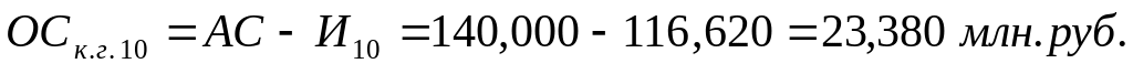 Остаточная стоимость на конец года ОСк.г., млн. руб. |