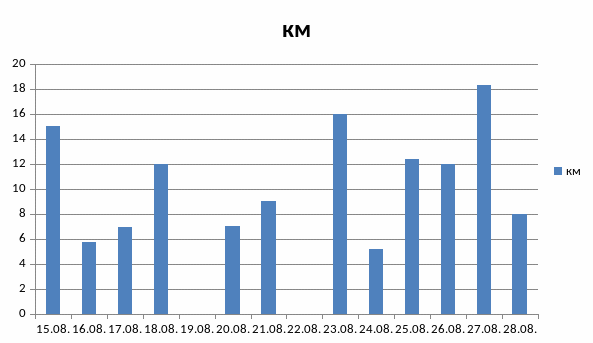 2.8. График изменения Километража при прохождении маршрута. Составил Титенко Алексей