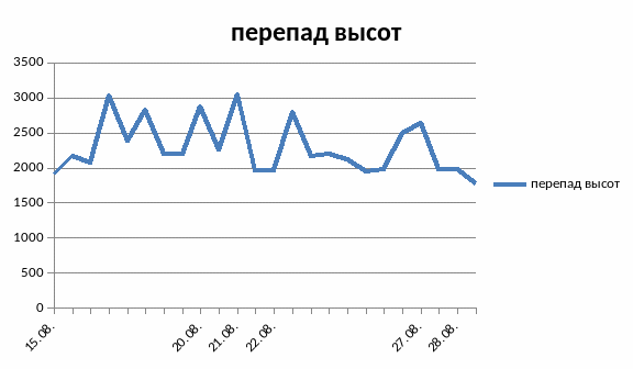 2.9 График перепада высот при прохождении маршрута Составил Титенко Алексей