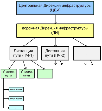 На уровне ОАО «РЖД» руководство путевым хозяйством осуществляет Центральная Дирекция инфраструктуры, а на дорогах – дорожные Дирекции инфраструктуры.