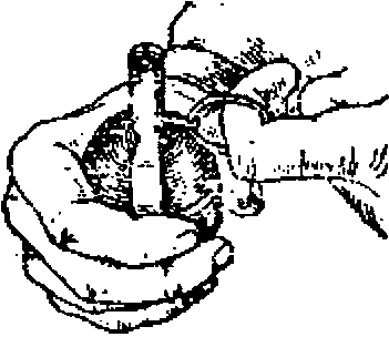 Для заряжания необходимо вынуть гранату из гранатной сумки, вывинтить пробку из трубки корпуса и ввинтить запал (см. рис. 19). Граната готова к броску.