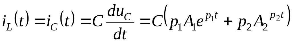 Постоянные интегрирования А1 и А2 находим из начальных условий. Для использования начального условия для индуктивности iL(0)=0 необходимо определить выражение для тока в электрической цепи: