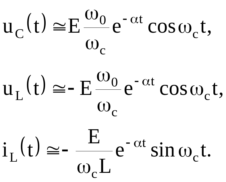 где A и – постоянные интегрирования, для нахождения которых используются начальные условия uC(0)=E и iL(0)=0.