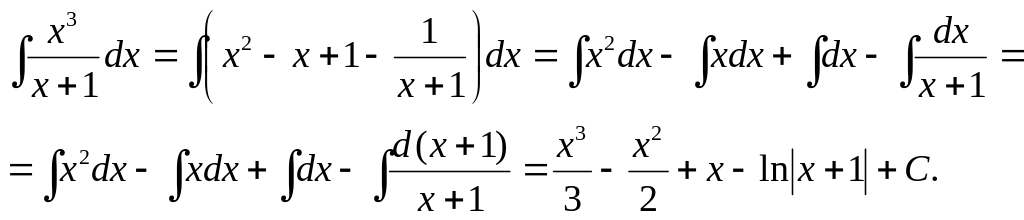 Решение: подынтегральная дробь – неправильная. Выделим целую часть; для этого делим числитель на знаменатель: