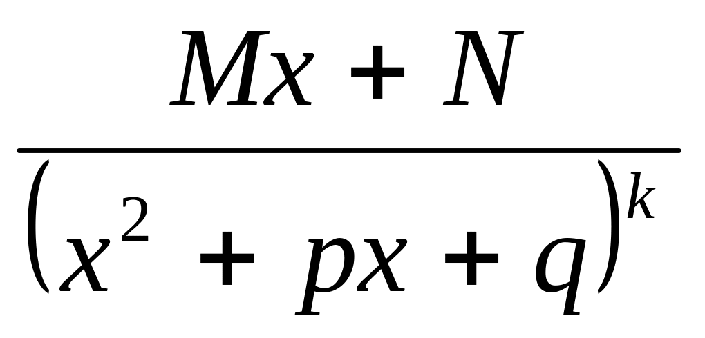 Любая правильная рациональная дробь может быть разложена на сумму конечного числа простейших рациональных дробей. Различают четыре типа таких дробей: