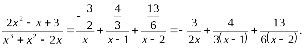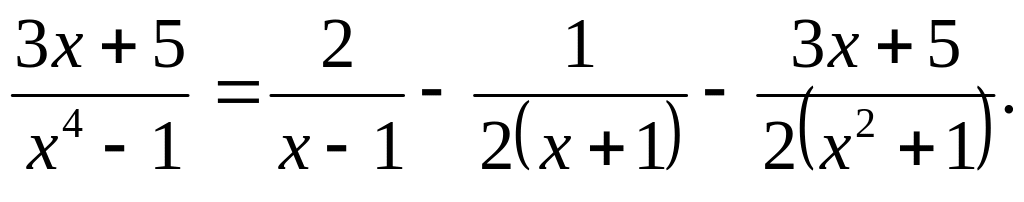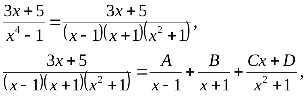 Решение. Представим дробь в виде суммы дробей и определим коэффициенты способом, указанным в примерах 2, 3: