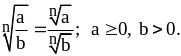 Арифметическое значение корня не изменится, если показатель корня и показатель подкоренного выражения умножить (разделить) на одинаковое число.