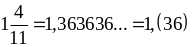 1,(36) – одна целая тридцать шесть в периоде. (36) – это период дроби.