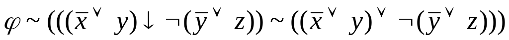 (для преобразования (1) использовался закон дистрибутивности, для (2) — эквивалентность 10, для (3) — закон поглощения). Таким образом, формула эквивалентными преобразованиями приводится к формуле (являющейся одновременно ДНФ и КНФ формулы ). |