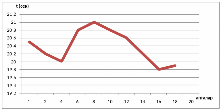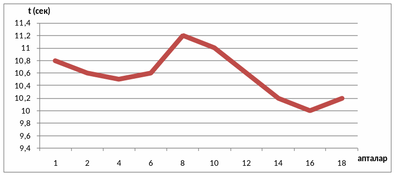 (Тест: 0,7 м 10 жоғары секірудегі орындалған уақыт)
