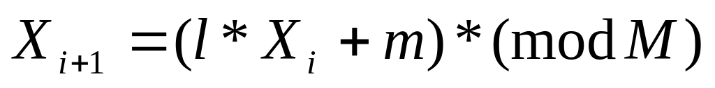 константа,то (2)однозначно определ последоват-ть целых чисел{Xi}составленную из остатков деления на М