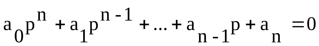Переходная составляющая решения уравнения (5.2) зависит от корней характеристического уравнения, которое получается путем приравнивания характеристического полинома к нулю: