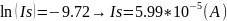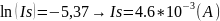 Рис. 3. Прямая ветвь ВАХ диода в полулогарифмическом масштабе