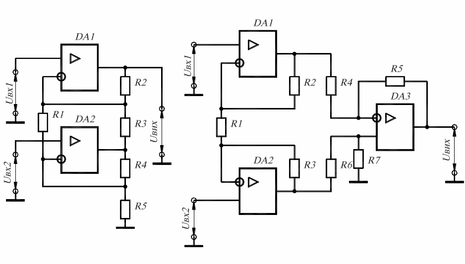 Інструментальні диференційні підсилювачі мають високі вхідні опори за обома входами і забезпечують встановлення заданого коефіцієнта підсилення за допомогою одного змінного опору.