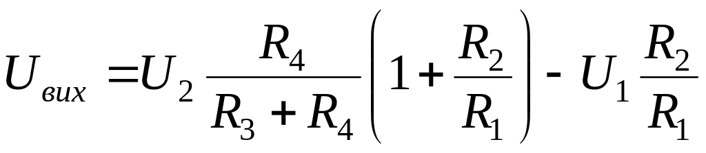 Диференційний підсилювач призначений для підсилення різниці двох вхідних напруг. Стабілізація коефіцієнта підсилення диференційного підсилювача, так як в інвертуючому і в неінвертуючому підсилювачах, відбувається завдяки негативного зворотного зв‘язку.