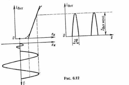 Выходной ток существует в течении половины периода усиливаемого сигнала. Ток покоя равен нулю.