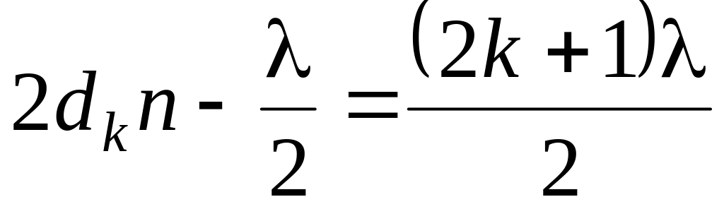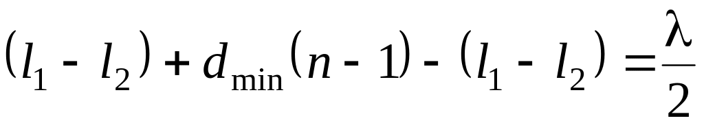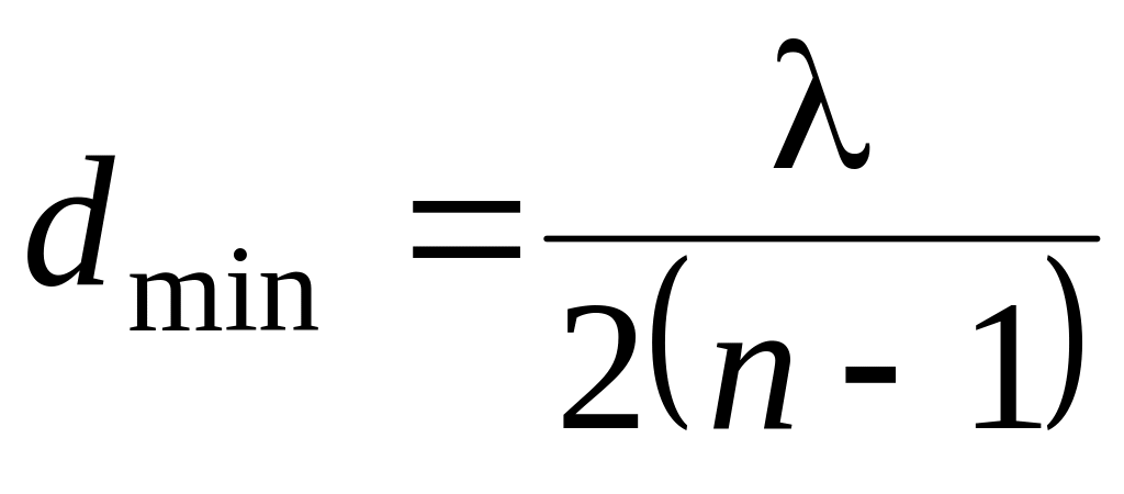 Наименьшей толщине dmin пленки соответствует =0. При этом формула (1.1) примет вид