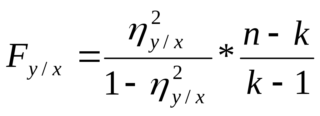 Если величина ηу/х удовлетворяет этому неравенству, то выбранная модель адекватна, она соответствует эмпирическим данным.