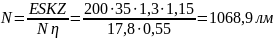 Размеры помещения: длина a = 10 м, ширина b = 3,5 м, высота H= 3,2 м. Коэффициенты отражения от потолка ρпот = 70%, от стен ρст = 50%. Высота рабочих поверхностей hp = 0,7 м. Светильники типа УПМ-15, подвешены к потолку; расстояние между светильниками и потолком hc = 0,5 м. Минимальная освещенность по норме Е = 200 лк.