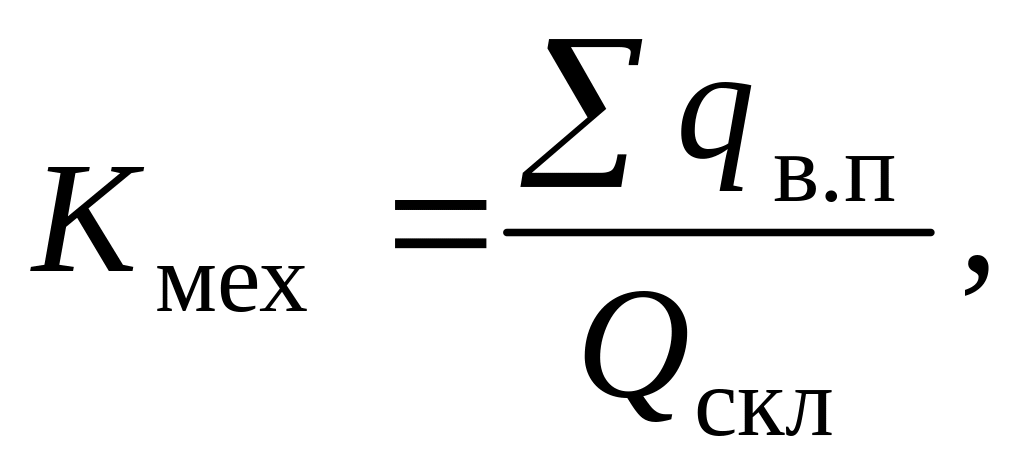 Для оцінки рівня оснащеності складів вантажно-розвантажувальними засобами і механізмами застосовують показник насиченості засобами механізації: