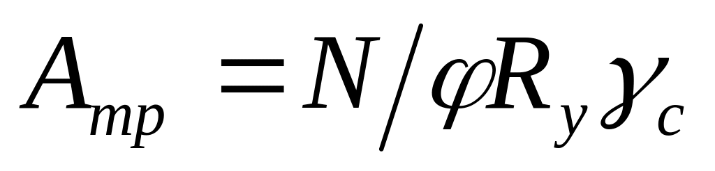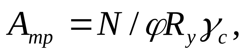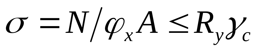 Задавшись гибкостью и определив по ней коэффициент φ , получаем требуемые площадь и радиус инерции относительно материальной оси x (так как гибкость относительно материальной оси равна расчетной гибкости).
