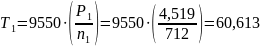 Частота вращения вала колеса n, = 47,769