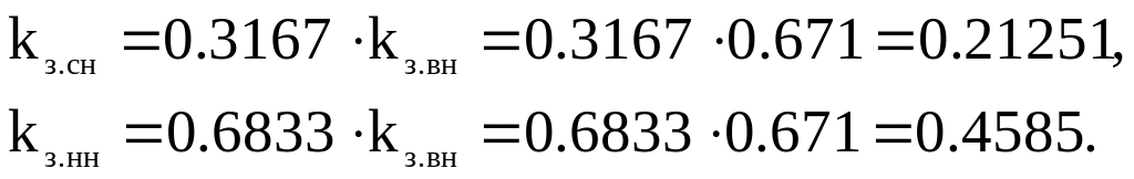 где kз.вн, kз.сн, kз.нн – коэффициенты загрузки соответственно высшей, средней и низшей обмоток.