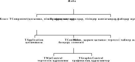 Құрылымдық түрде жоғарыда көрсетілген құрауыштардың бәрі TComponent (Құрауыш) класына, объект жобасында қолданылатын жалпы және көп санды топтарға қарайды. Нақты түрде бұнда тек файлдармен жұмыс істеу, графикалық әдістер, әртүрлі тізімдер мен ағындар және басқа объектілер қатары ғана кірмейді. Қосымша меншік TApplication (Қосымша) класын қалыптастырады, ол тікелей TComponent класының ұрпағы болып саналады.