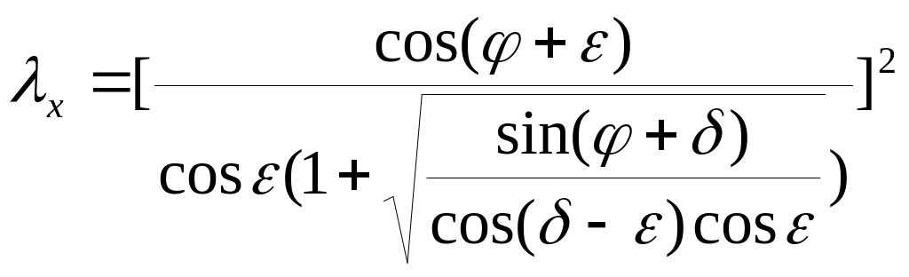 Коэффициенты горизонтальной составляющей бокового давления определяется по формулам: