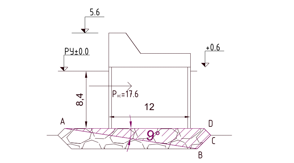 Условие устойчивости сооружения на сдвиг по плоскости ABCD: