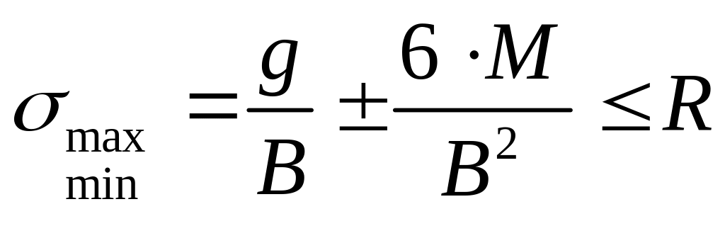 W – момент сопротивления подошвы сооружения, относительно оси, проходящей через центр тяжести на 1 пог. м. W = 1.B/6;