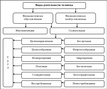 Труд – вид деятельности, но не всякая деятельность является трудом. Деятельность людей характеризуется составом и структурой составляющих ее разновидностей. Виды деятельности человека показаны на рис. 3.