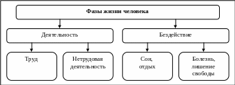 В течение жизни человека, в каждый ее момент он находится в одном из двух состояний – деятельности или бездействия. На рис. 2 представлены фазы жизни человека.