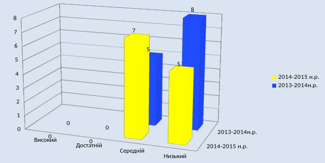 За даними діаграми в кінці навчального року можна відмітити те, що потенціал в учнів на середньому та низькому рівні. Низькі показники пояснюються тим, що в цьому навчальному році в клас прибуло 4 учні; проведена робота сприяла покращенню росту потенціалу цих учнів, але ж все таки на даний момент майже всі (Гайдуков В., Шкуріна Р., Щарбина К.), окрім Застрожникової Мар’ї мають низькі показники.