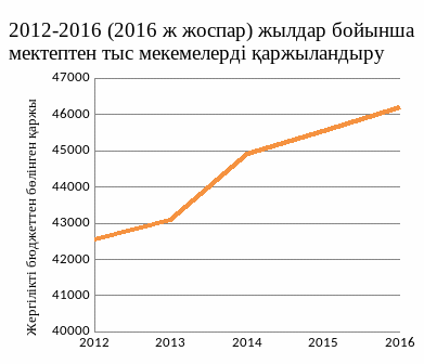 Бұл көрсеткіш прогрессивті түрде өсып отыр. Яғни жергілікті бюджеттен жыл сайын тұрақты түрде қаржы бөлінуде.