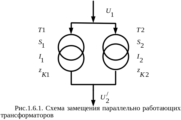При нагрузке трансформаторов уравнительные токи складываются с токами нагрузки и вызывают при чисто активной или активно-индуктивной нагрузке перегрузку трансформатора с меньшим коэффициентом трансформации и недогрузку трансформатора с большим коэффициентом трансформации.