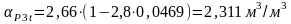 Р3 = 210 атм; 3 = 2,66 м3/м3; k3 = 0,0469.