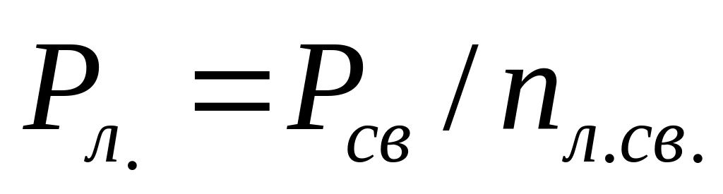 За нормами питомої потужності розраховують освітлювальні установки приміщень з загальним рівномірним освітленням, в якому немає громіздкого устаткування, що може створити затінення. Нормами питомої потужності користуються також при орієнтовних розрахунках освітлювального навантаження трансформаторних пыдстанцый і ліній електропередачі. Розрахунок освітлювальної установки виконують так. Спочатку за методикою, наведеною вище, вибирають джерело світла, тип і кількість світильників. Потім, за питомою потужністю Рпит, площею приміщення S.(дод 10. 11) кількістю світильників Nсв