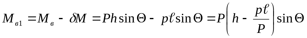 Такое перемещение груза создает дополнительный кренящий момент ΔM=Pl sinӨ, где ℓ – длина линии подвеса от точки О до ЦТ груза g.