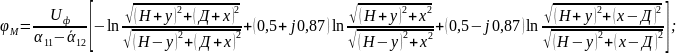 Потенциал электрического поля, создаваемого трехфазной линией с конкретным расположением фазовых проводов, в произвольной точке М с координатами x, y, определяется выражением: