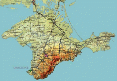 Вдоль всего северо-восточного побережья Крыма протягивается система мелководных заливов Азовского моря (Сиваш), отделенных от моря низменной и песчаной косой – Арабатской стрелкой. Северная, большая часть полуострова, представляет собой степную равнину (Степной Крым), южная, меньшая часть, занята крымскими горами, которые простираются от Севастополя до Феодосии и состоят из трех параллельных гряд с пологими северными и крутыми южными склонами. Южная наиболее высокая гряда гор достигает 1545 м. (г. Роман-Кош). Вдоль южного подножия южной гряды простирается прибрежная полоса южного берега Крыма. Местами на побережье встречаются выходы магматических пород в виде лакколитов (г. Аюдаг), древних вулканических массивов (г. Карадаг). Из полезных ископаемых известны: месторождения керченских железных руд, соли и лечебные грязи в озерах, известняки, глины, мергели. Климат северной части Крыма умеренно теплый. Зима мягкая (средняя температура января 10, 20 С); лето очень теплое (ср. температура июля 240 С). На южном берегу климат средиземноморский; очень теплое лето (250 С) и мягкая зима (40 С). Осадков в западной части гор около 1000-1200 мм. в год, на востоке полуострова 500-700 мм., на севере 300-500мм. в год. Реки Крыма маловодны; важнейшие – Черная, Бельбек, Кача, Альма, Салгир. На реке Салгир построено Симферополское водохранилище. Имеется несколько крупных лиманских озер: Красное, Старое, Сакское, Акташское, Тобечикское и д.р. Почвы в северной части Крыма каштановые, вдоль Сиваша – каштановые в комплексе с солонцами и солончаками, в центральной части преимущественно южные черноземы, в предгорьях и горах выщелоченные черноземы, бурые горно-лесные, на яйлах (плоских вершинах Главной гряды Крымских гор) черноземовидные горно-луговые. Поверхность северной части в основном распахана. На небольших участках сохранилась степная растительность. В горах (особенно на северных склонах) леса: дубовые, буковые, буково-грабовые, местами сосновые. На южном берегу Крыма растительность средиземноморского типа. Многочисленные парки из декоративных деревьев и кустарников, сады, виноградники, табачные плантации. На южном берегу расположены оновные города и курорты: Ялта, Мисхор, Алупка, Симеиз, Гурзуф, Алушта и д.р. Главные города: Симферополь, Севастополь, Керчь.