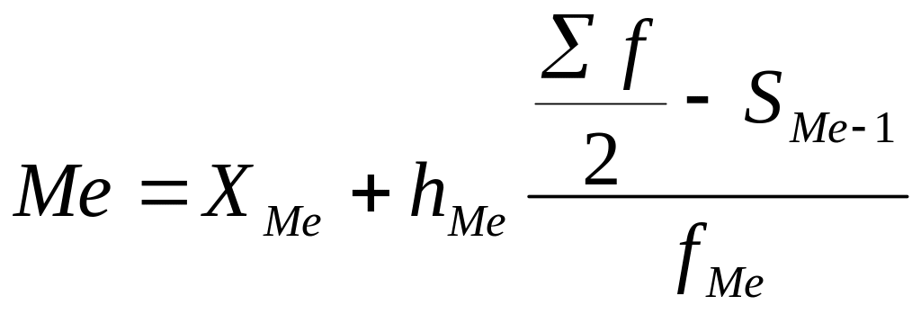 Для интервального ряда Ме вычисляется по следующей формуле: