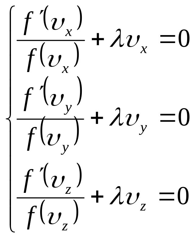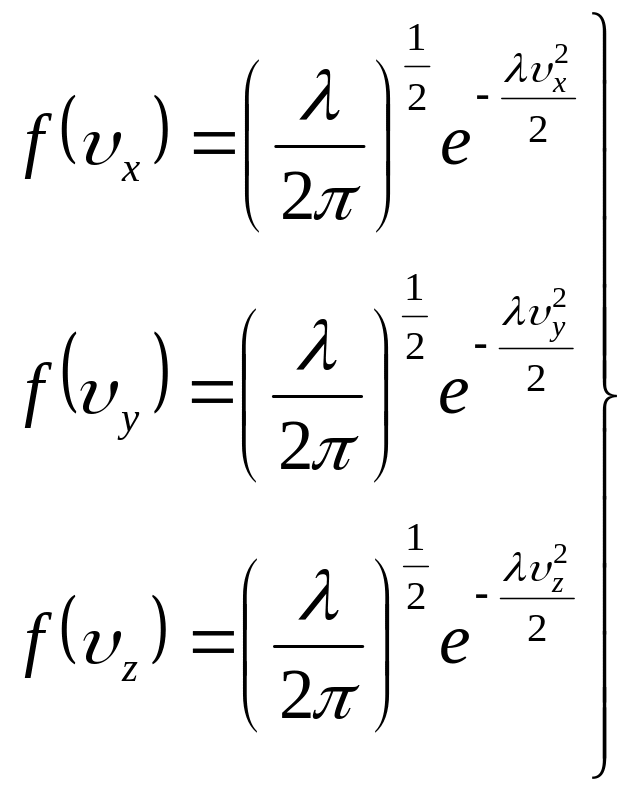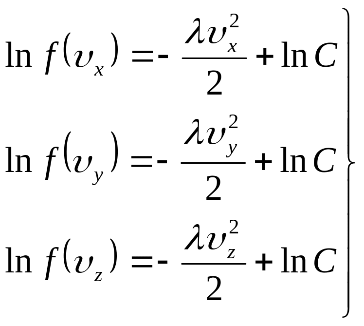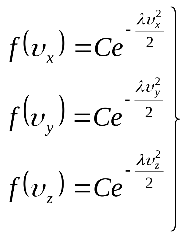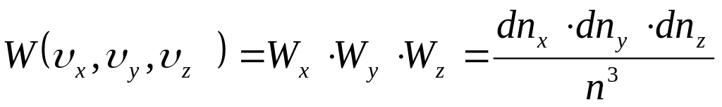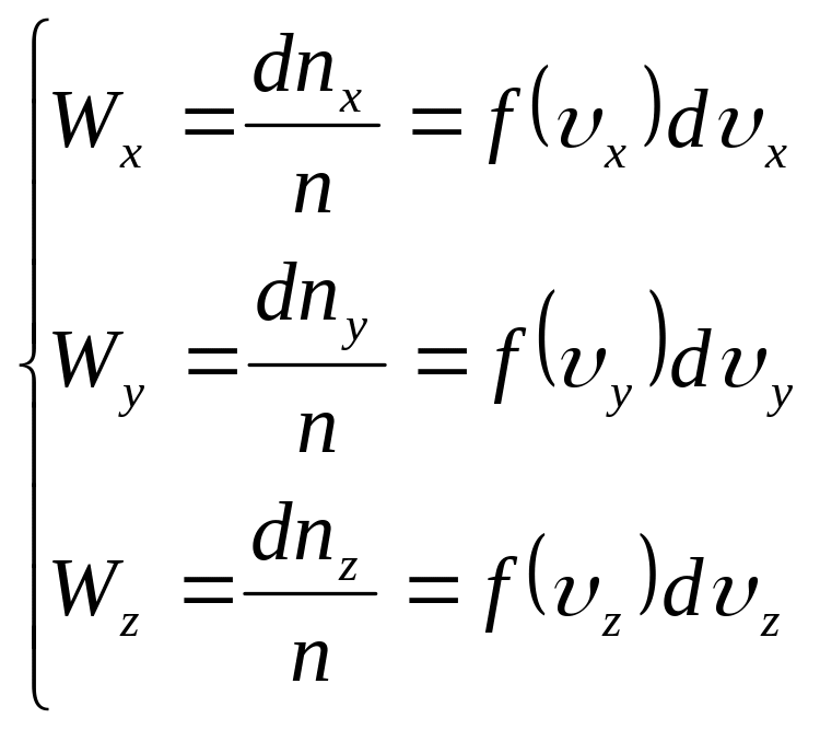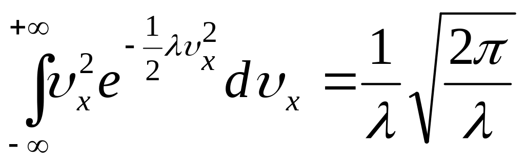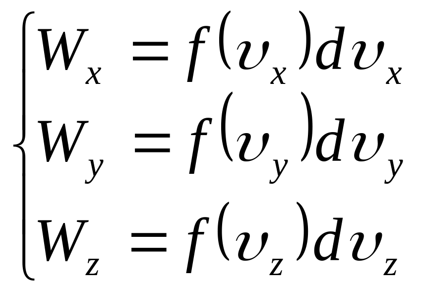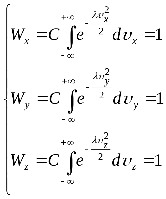 Підставимо в ці формули значення x, y, z) з (14) і проінтегруємо отримані вирази по всім можливим швидкостям від - до + . При цьому врахуємо, що, згідно умові нормування, Wx, Wy i Wz будуть дорівнювати 1. В результаті отримаємо: