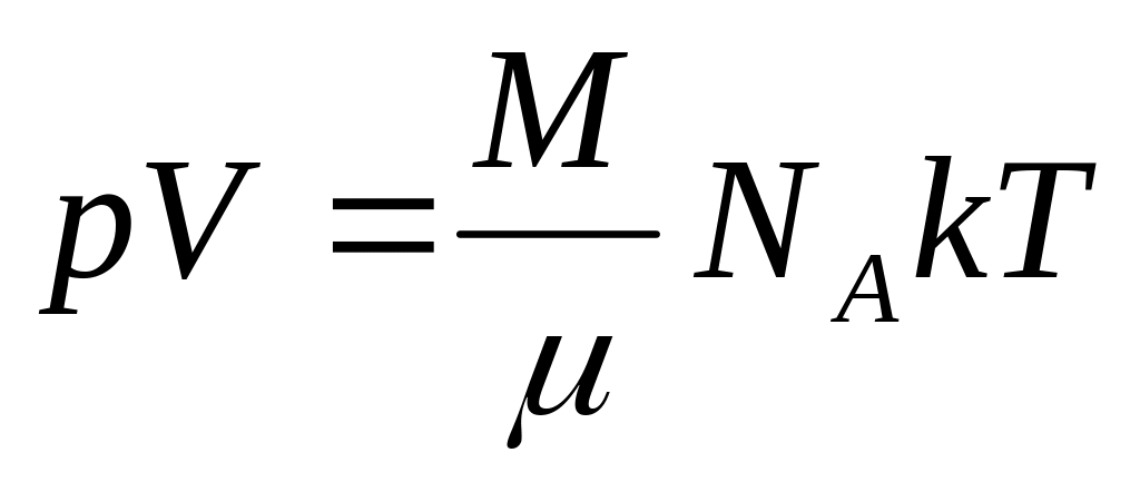 що поєднує тиск газу з його температурою і концентрацією молекул, отримано для моделі ідеального газу, молекули якого взаємодіють між собою і зі стінками посудини тільки під час пружних зіткнень. Це співвідношення може бути записане в іншій формі, що встановлює зв'язок між макроскопічними параметрами газу – об'ємом V, тиском p, температурою T і кількістю речовини ν.