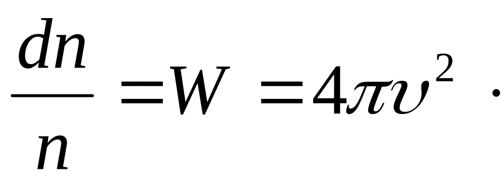 де – це функція розподілу молекул за швидкостями. Вона визначає долю молекул одиниці об’єму газу, швидкості яких знаходяться в одиничному інтервалі швидкостей, що включає в себе і дану швидкість.